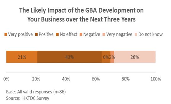 Il sondaggio ha rilevato che le società statunitensi prevedono che lo sviluppo del GBA avrà un impatto positivo sul business nei prossimi tre anni. Per sfruttare le opportunità di GBA , la maggior parte delle aziende ha messo in atto piani aziendali specifici con azioni concrete come l’apertura di nuovi uffici nella regione. Poiché queste società statunitensi stanno pianificando di entrare nel GBA in modo sempre più approfondito, vedono Hong Kong come un partner pronto a fornire una gamma di servizi in modo tempestivo e professionale.
