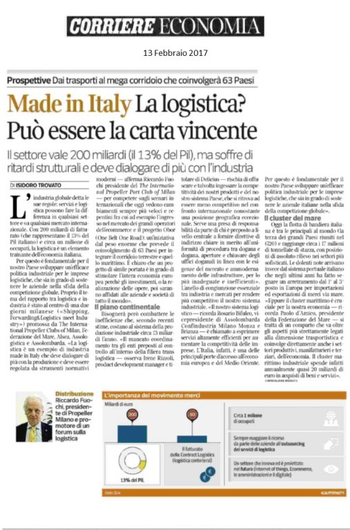 Il Corriere Economia su Shipping Forwarding &Logistic meet Industry 13 Febbraio 2017 Le dichiarazioni di Riccardo Fuochi sul Corriere Economia di oggi 13/02/2017
