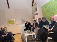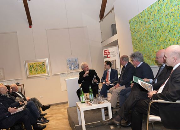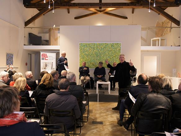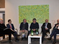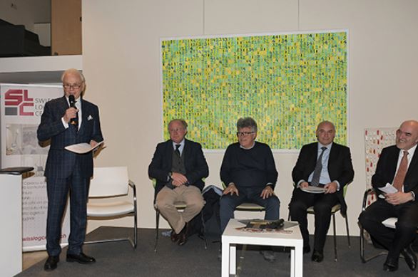 Al vernissage incontro oltre al maestro Giorgio Piccaia sono intervenuti: Bruno Arrigoni, sindaco di Chiasso, Stefano Cordero di Montezemolo, docente di economia d’impresa (Fibonacci e la finanza), Daniele Cassani, presidente del Riemann International School of Mathematics e docente dell’Università dell’Insubria, Luca Gambardella, direttore IDSIA USI-SUPSI, Daniele del Monte, CIO Safe Capital Management e Riccardo Fuochi, CEO di Swiss Logistics Center.