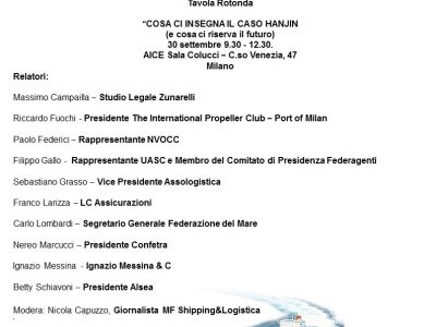 Mercoledì 26 setembre, presso il NH Jolly Hotel PRESIDENT di Milano, in Largo Augusto n. 10, si è tenuta una riunione conviviale del Propeller Club di Milano sul tema: “PROCEDURE DOGANALI e COMPLESSITA’ OPERATIVE lungo la catena logistica PORTI – RETRO/INTERPORTI Come provare a trasformare in opportunità le complessità esistenti: l’Italia al centro dei flussi Asia<>Europa”.