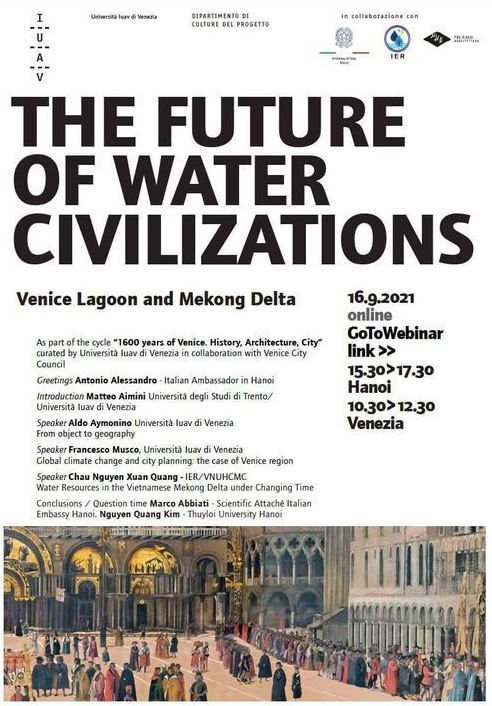 In Vietnam, i 1600 anni dalla fondazione di Venezia sono stati celebrati con il webinar “The future of water civilizations- Venice lagoon and Mekong delta” (sia in lingua inglese che vietnamita) che ha affrontato e confrontato l’evoluzione e le prospettive delle due civiltà storiche che dipendono dalle risorse idriche nel quadro degli scenari del Cambiamento Climatico in corso.